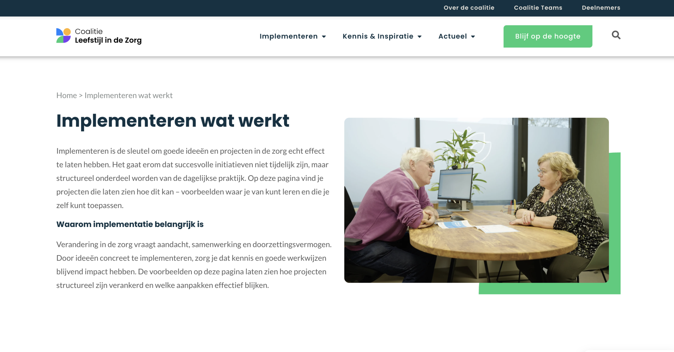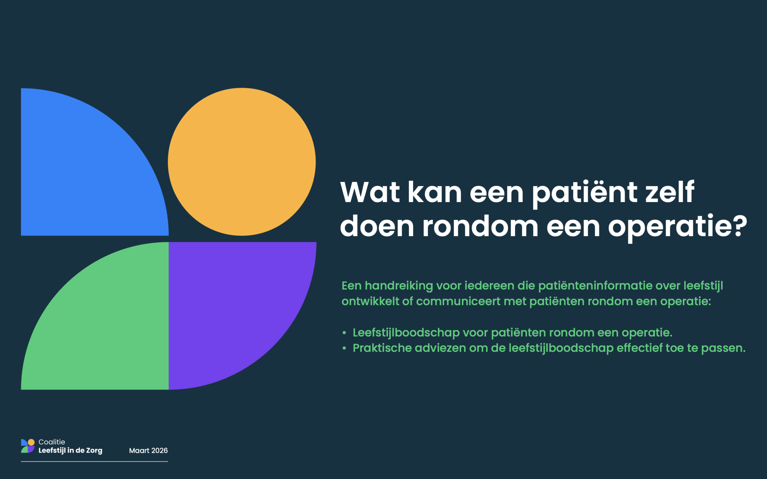 De Coalitie onderzocht samen met diverse betrokkenen hoe teachable moments optimaal benut kunnen worden. Dit leidde tot drie praktische handreikingen: een operatie, een medicatieverandering en plaatsing op de ggz-wachtlijst. De handreikingen bevatten wetenschappelijk onderbouwd gedragsadvies, en bieden inspirerende voorbeelden en tools om leefstijl structureel in de zorg te integreren.